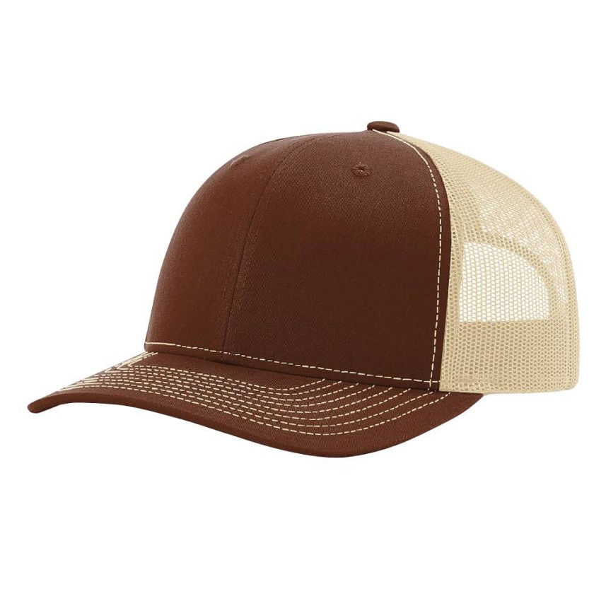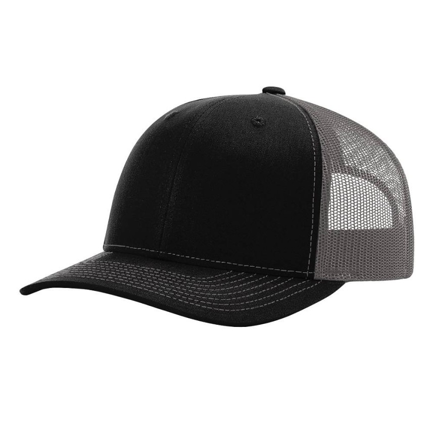 Classic 6-panel structured trucker cap with mid-profile design, 100% cotton twill front, and breathable polyester mesh back. Features a pre-curved bill and adjustable plastic snapback closure for a secure, comfortable fit. One size fits most.